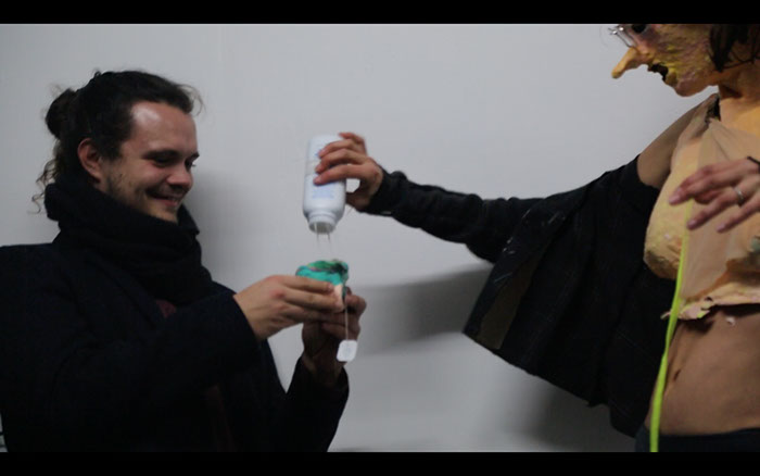 This performance is inspired by anti-dualistic discourses. These argue against an apriori existence of nature. Nature is produced in the process of its exploration. Nature and culture are inseparably intertwined. According to Donna Haraway, such an attitude implies that all human beings are monsters, because the apparatuses (=discursive processes) that make people into human beings have to keep on working in order to maintain this border or even to shift it.