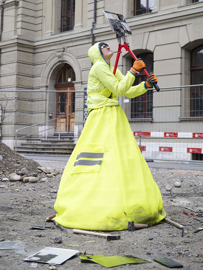 Accompanied by Maurice Ravel’s Bolero the performance features a laptop being dismantled into its individual parts using archaic tools. Orlowska combines manual labor and technology, referencing processes of raw material extraction. She draws attention to the invisible sequences of labor hidden within everyday technological objects and examines the resources on which our modern world is built.